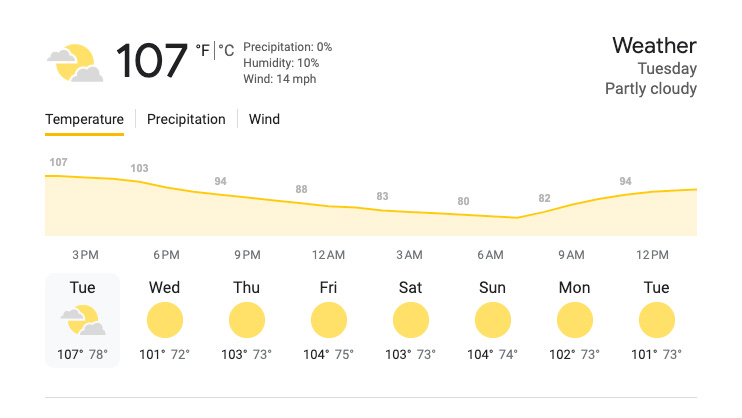 But that was in the Rocky Mountains. Here, in the Sonoran Desert, even as I write this, it’s still hovering in the triple digits. Just this past weekend, I was sweating buckets when it reached 105ºF on Saturday.