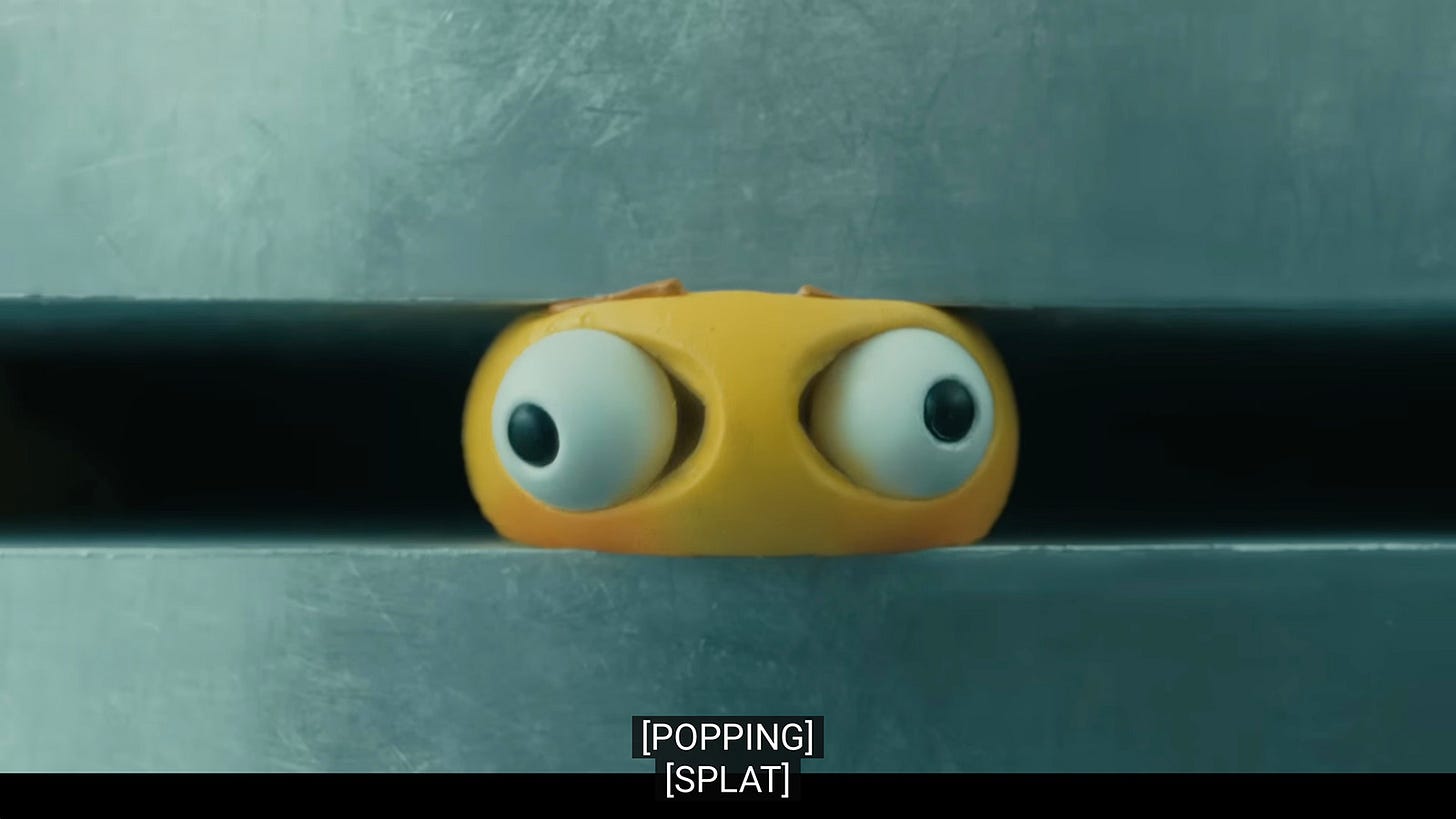 In the penultimate moment, a goofy yellow smiley emoji becomes a bug-eyed scary-clown freak as it, too, is crushed to death.
