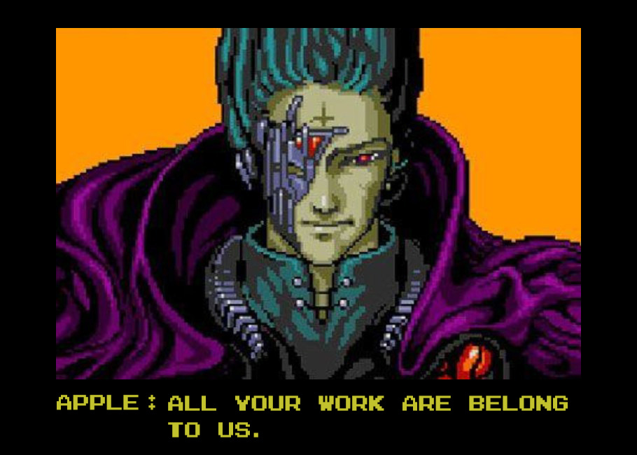 Maybe Apple is not only gobbling up everyone else’s work but also homogenizing it—and us—and forcing us to use their platform, pay their fees, abide by their rules, and constantly keep upgrading, upgrading, upgrading, to an ever-thinner iPad in order to use it.