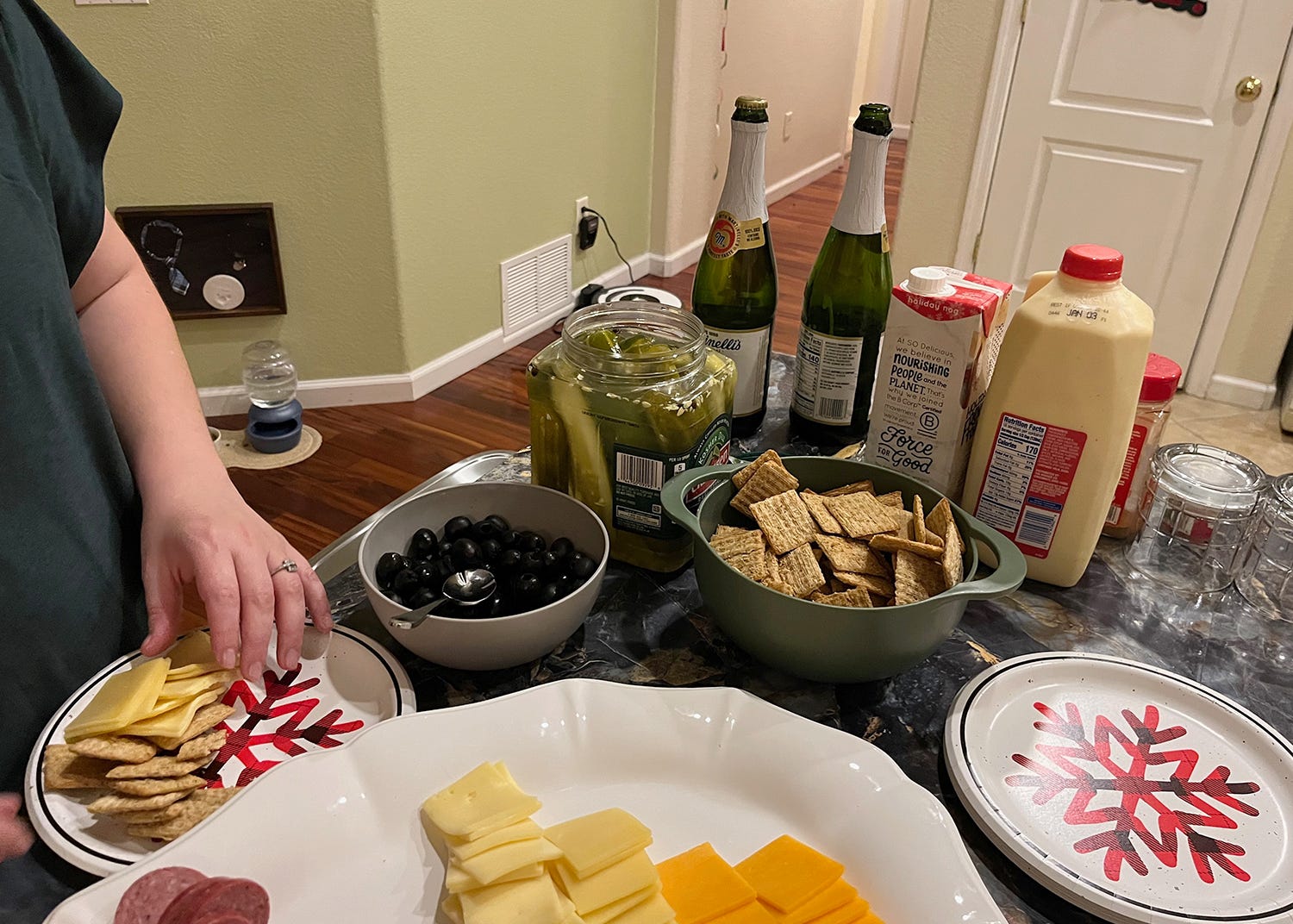 But that was okay; they just reverted to “Plan B” — pulling out all the cold foods from the fridge that didn’t need to be heated. Bread, meat, cheese, pickles, olives, crackers, cookies, and more.