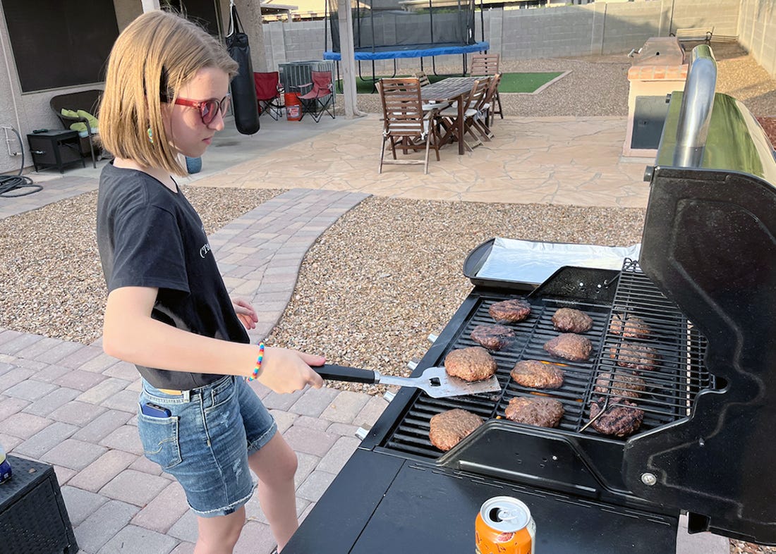 We’ve started smaller with easier items like hot dogs, bratwursts, and hamburgers.. and maybe we’ll get to steaks someday. It’s still a little bit weird for me to see girls working the grill—I never saw that growing up. But I like it. I like including my daughters in the family tradition, even if they only have a passing interest.