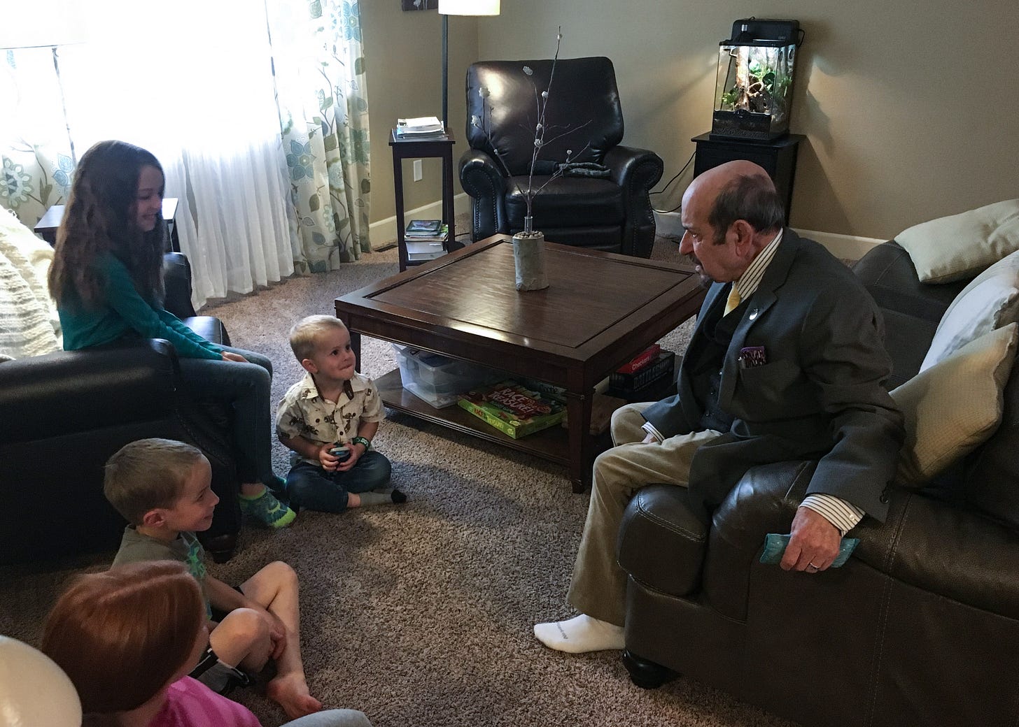 When we arrived at my house, Samuel and I got out of the car and walked inside. I introduced him to our five kids, and he mesmerized them by playing a game where he pretended that when they shook his hand, it actually hurt him greatly.