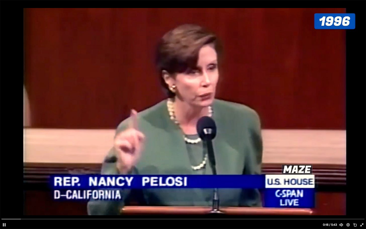 Pelosi in 1996: “How far does China have to go? How much more repression, how big a trade deficit and loss of jobs for the American worker, and how much more dangerous [a] proliferation has to exist… before members of this House of Representatives will say, ‘I will not endorse the status quo?’”